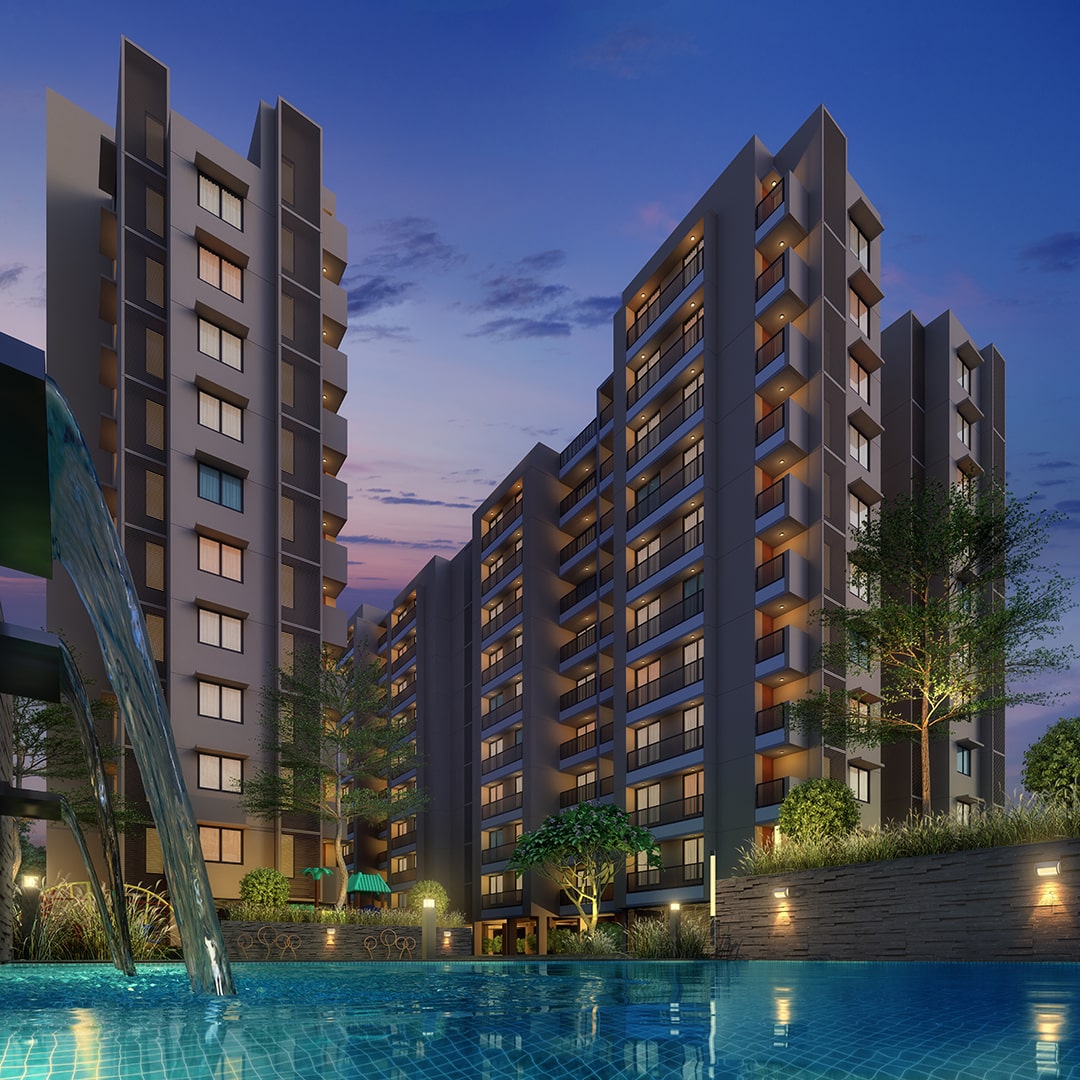 BLEND IN BLESSED BLISS Witness the incredible architecture and dazzling design to ignite your lifestyle at your own Pramukh OM. Time to blend with the nurturing nature and blissful ambiance...